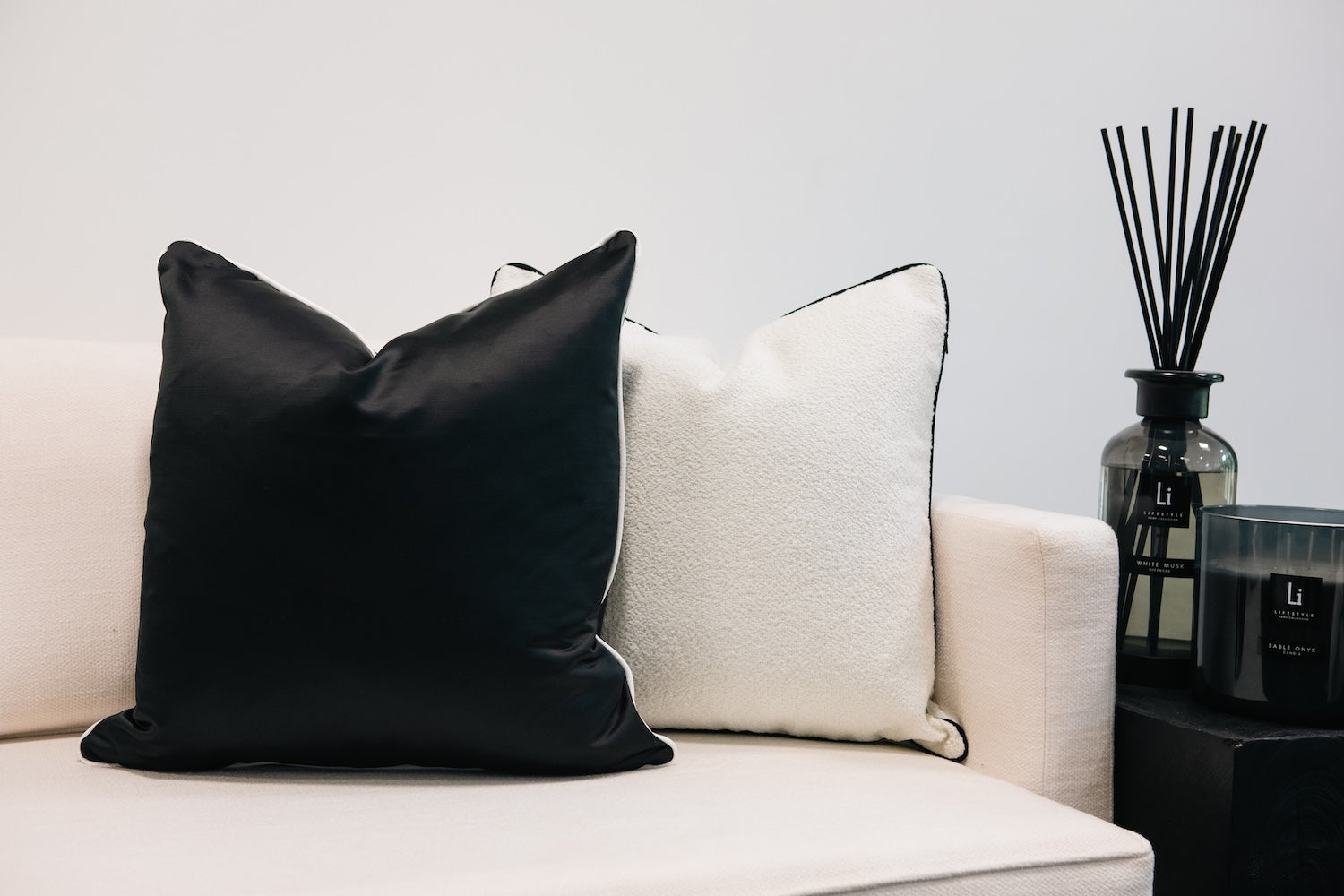 The Midnight cushion boasts a soft, smooth satin finish which creates a comfortable cushion. The striking contrast between the black satin and white velvet cushion piping creates a stylish cushion that is modern yet versatile to fit into your interior space. Simplicity is key in this monochrome cushion, which allows it to easily be brought into any scheme.