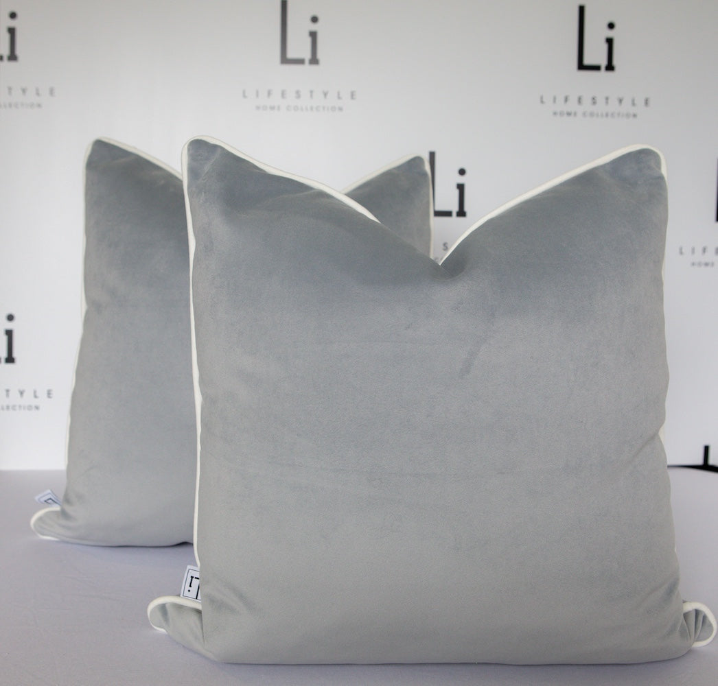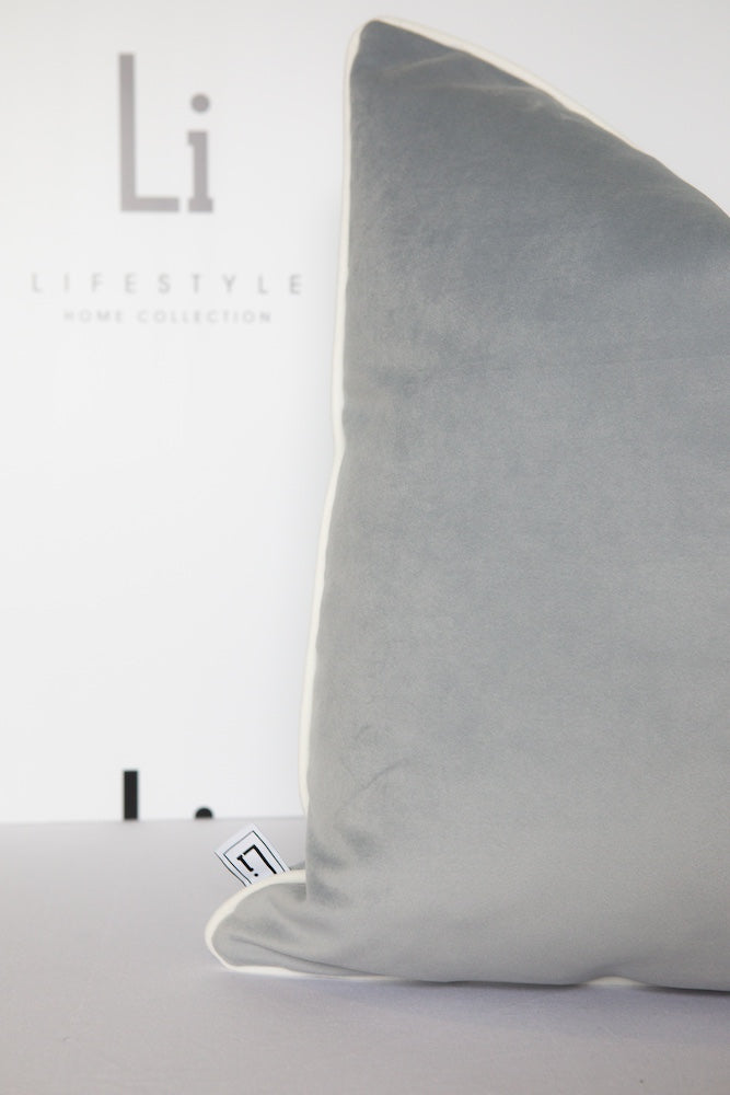 The Lily cushion is curated from plush, sumptuous, luxury velvets. A warm toned, blue velvet, with soft grey tones is expertly paired with a crisp white velvet to finish this simple yet opulent cushion. Perfect for adding a touch of luxury and comfort to any sofa, bed or living space, this cushion offers a refined finish that elevated the overall aesthetic of your home.