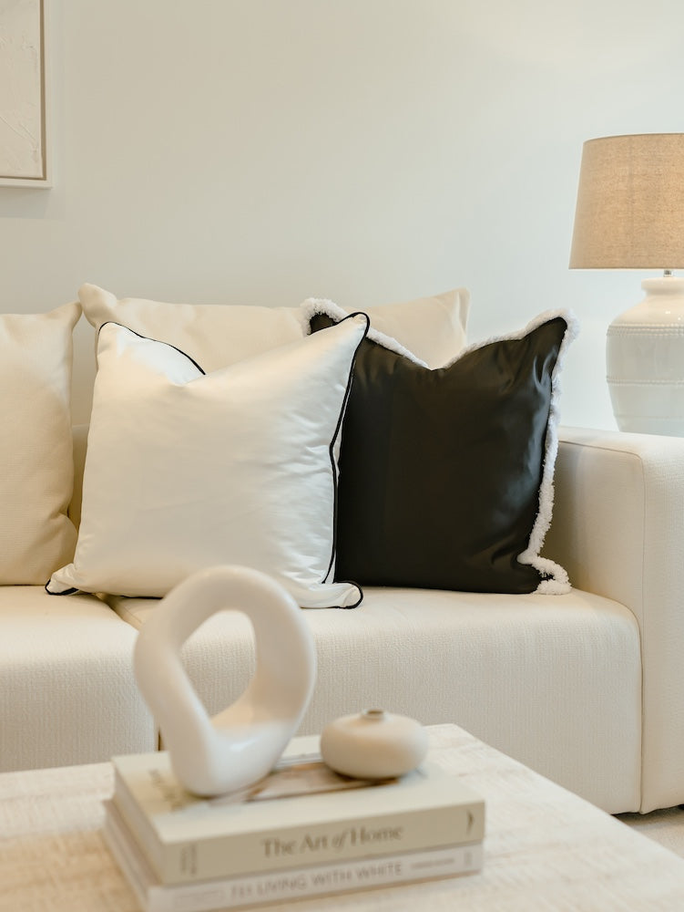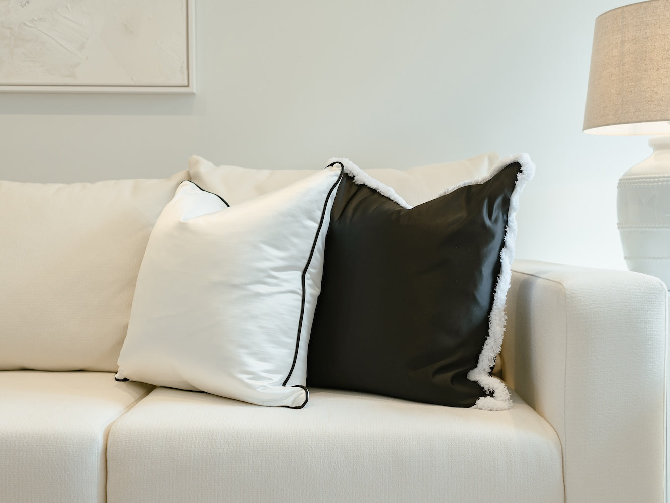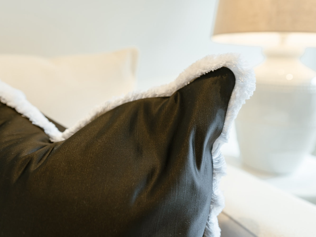 The Luna cushion exudes timeless elegance with its classic black and white colour scheme. The cushion is crafted from a high-quality fabric, offering a smooth, sophisticated texture that adds a touch of sheen and reinement to any space. A striking contrast is created between the deep black and crisp white, which creates a bold and modern statement. Adding to the opulent design is a delicate fringe trim, which introduces a layer of intricate detail which enhances the cushions visual, luxurious appeal.