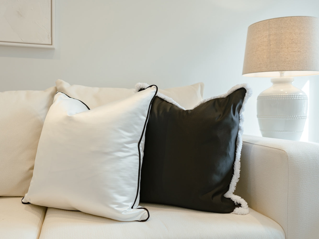 The Ivy cushion is elegant and luxurious, whilst showcasing a monochromatic style. A smooth, ivory, satin fabric is paired with black, sumptuous velvet, cushion piping, which creates an opulent look. This cushion will seamlessly integrate into your home, providing a luxurious, timessless and versatile look.