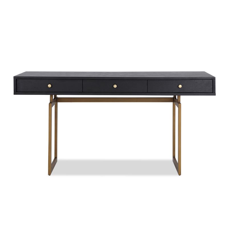 Black Ash Veneer, Antique Brass Finish Steel Legs