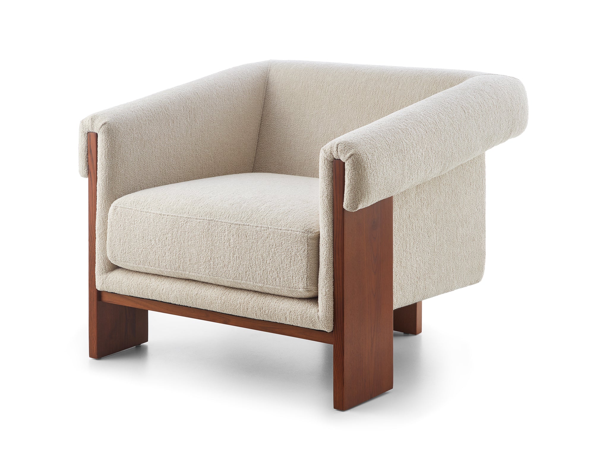 Immerse yourself in the exquisite comforts of the Maplin Occasional Chair. The armchair is perfectly suited to any environment and features a soft backrest and armrests. The Lander Shade upholstery and traditional brown wooden legs are sure to create a focal point in any interior space. Amazingly upholstered in a choice of Lander Shade, Lander Ocher or Speckle Gray.