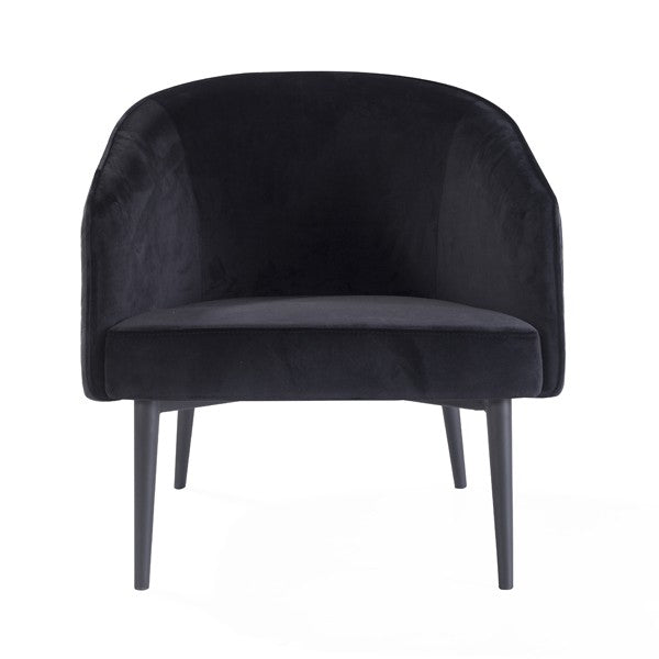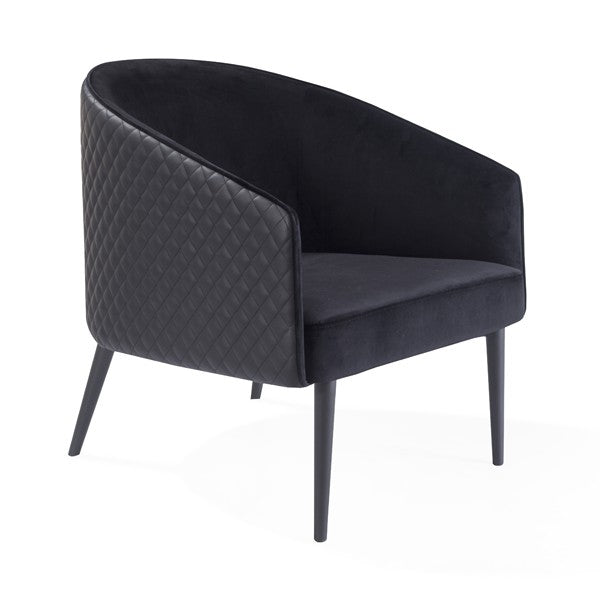 An elegant and modern piece of furniture that completes the interior of your living room or bedroom. A luxurious vanity black velvet seat and mustang black outer seat are used. Diamond stitching and black metal legs give this chair a modern look.