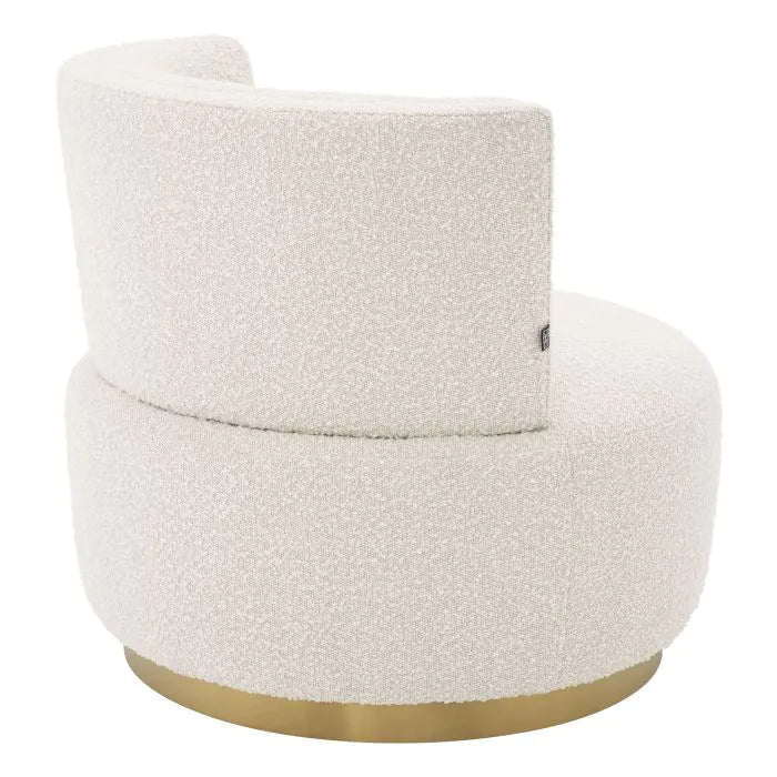 The Alonso swivel chair brings a breath of fresh air into every room. This beautiful lounge chair features cream bouclé upholstery and a brushed brass swivel base. It has a luxurious look and instantly increases the comfort of your chair.