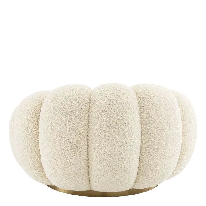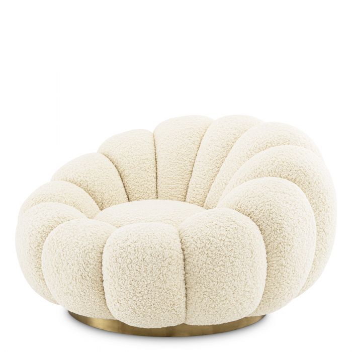 With its relaxing curves and soft-touch upholstery, the Melo Swivel Chair brings luxury to your home. Resembling an open flower, this delightful faux leather accent chair makes a very decorative accent to your Living Room room or bedroom. Mounted on a brushed brass swivel base.