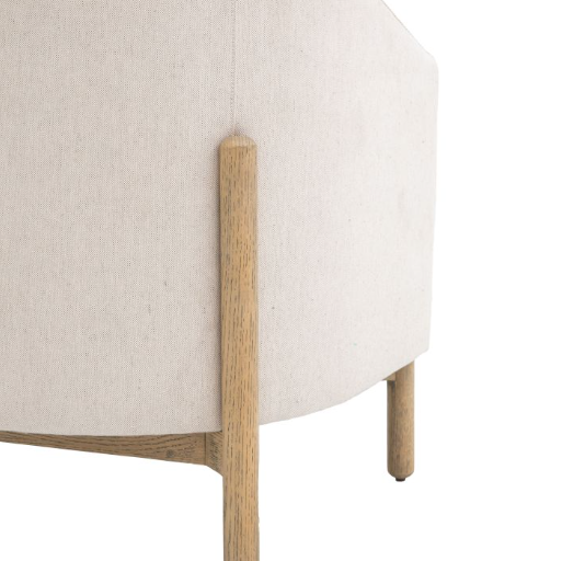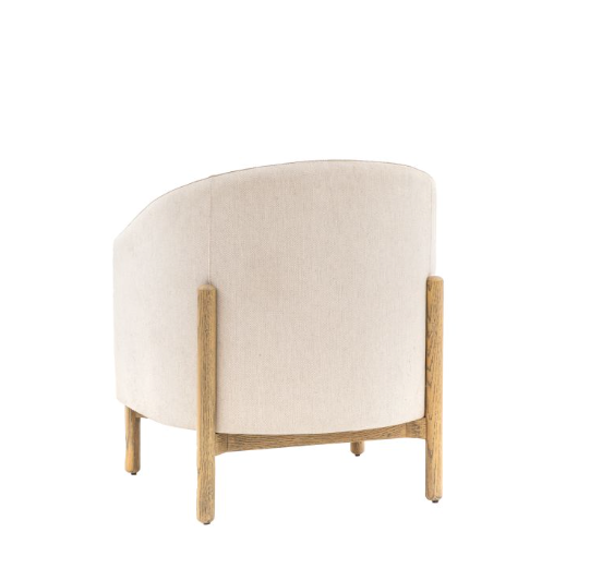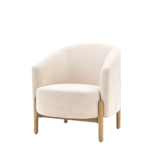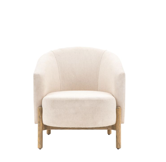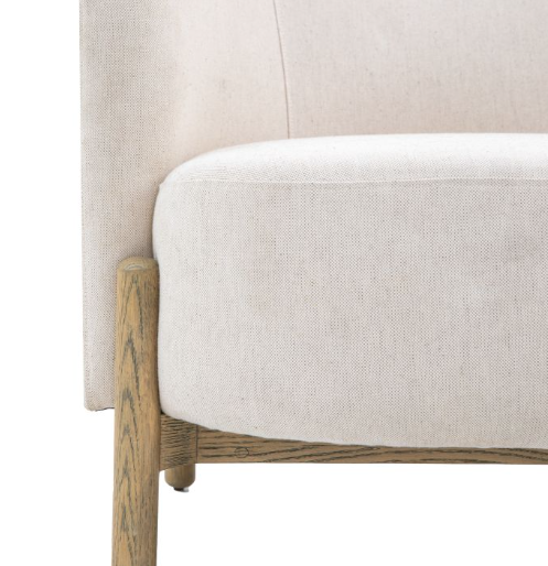 Suitable for a wide range of interior styles, this stunning armchair has a deep seat and curved back. Upholstered in a natural coloured fabric which pairs perfectly with its wooden frame and legs.