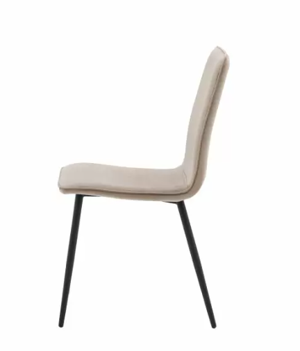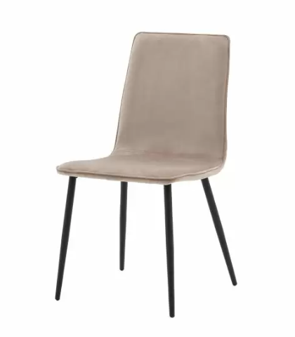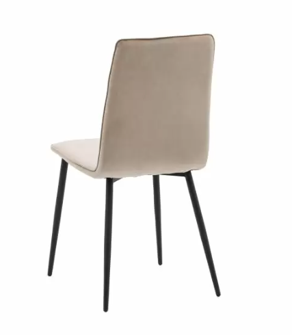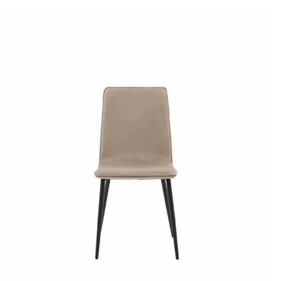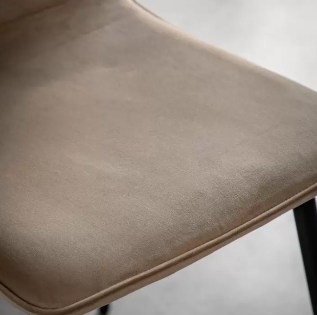 Set of 2 modern and versatile dining chairs, designed to be sleek and contemporary. Upholstered in a soft neutral taupe velvet with line stitching, completed with a slim black leg which can compliment a variety of interior styles.