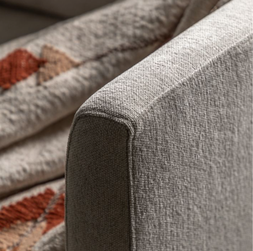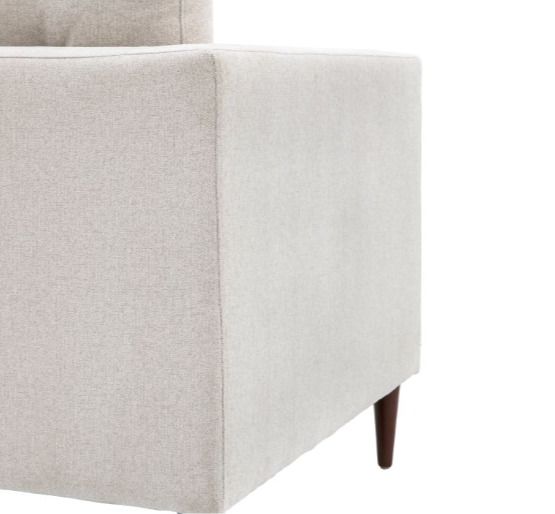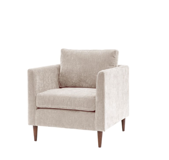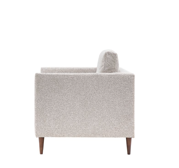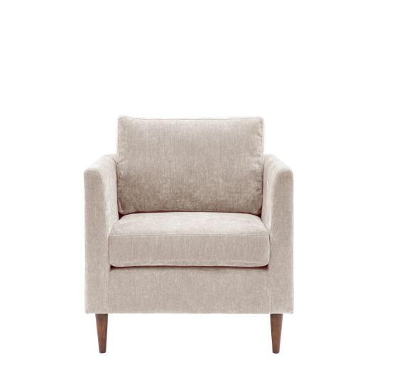 Offering a contemporary stylish design, this armchair suits a wide range of interiors. Upholstered in a soft natural fabric, with deep seat and back cushions for maximum comfort. The arms are gently tapered which are echoed by the turned wooden legs.