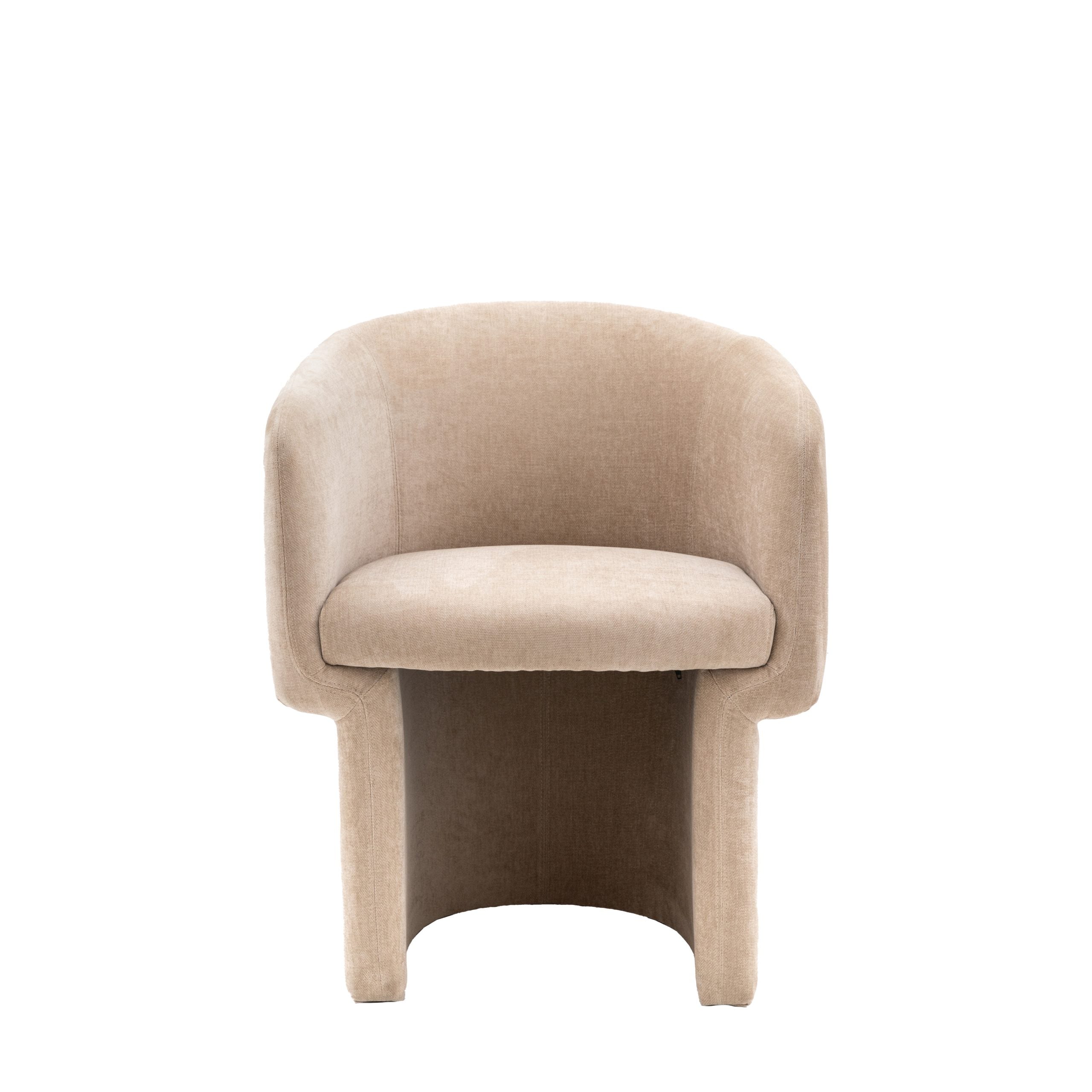 Vintage inspired, curved tub chair upholstered in a smooth cream fabric. Fits both a modern and vintage inspired interior, whilst also being a comfortable and stylish dining chair.