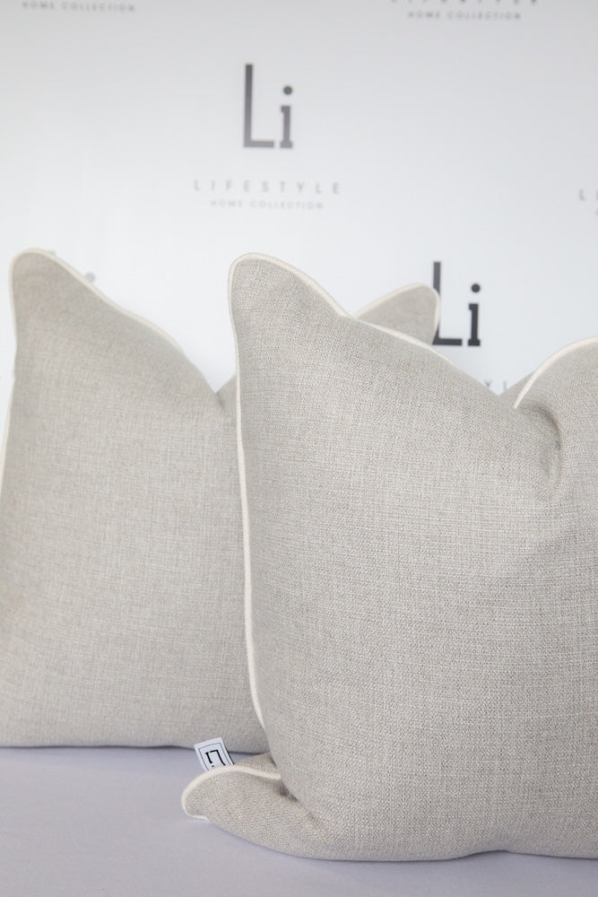 The Blake cushion is crafted in a small and subtle, grey weave which adds texture and depth to your home. This grey hue provides a timeless and versatile aesthetic which can seamlessly compliment various décor styles. Completed with a contrasting white piping along the edges, this adds an extra sense of luxury to the cushion, whilst reinforcing the plump structure of the cushions and highlights their sumptuous design.