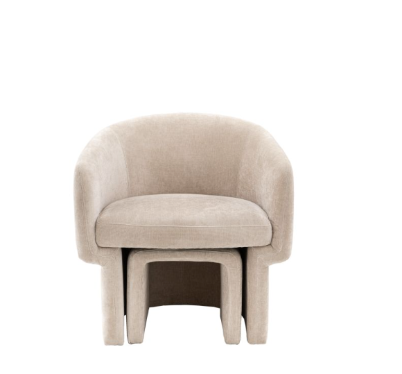 Retro inspired, this chair is a great addition to any room. Upholstered in a cream smooth fabric, the curved back of this chair narrows down to a double step feature at the front. This makes for a great addition to both modern and eclectic inspired interiors.