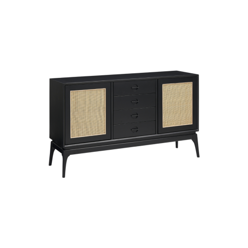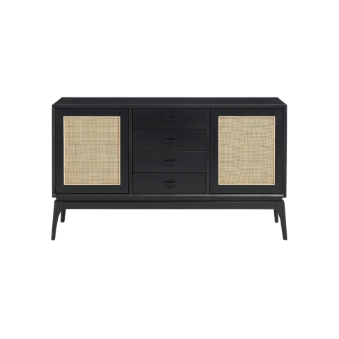 The Elder Sideboard is a stylish and functional piece of furniture that brings a touch of bohemian warmth and an organic feel to any room. Featuring a black frame and wicker weave, this sideboard has a unique and modern aesthetic. The drawers have ample storage space for all your essentials, perfect for your living room, dining room, entryway, and more.