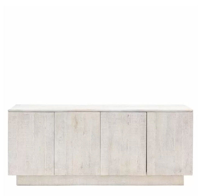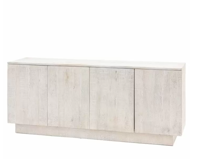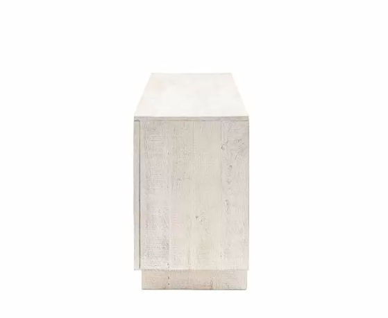 Add a rustic charm to your home, with this solid sideboard. Made with rough mango wood in a charming whitewashed finish, this sideboard features 2 cupboards and 4 doors with interior shelves to maximise your storage space.