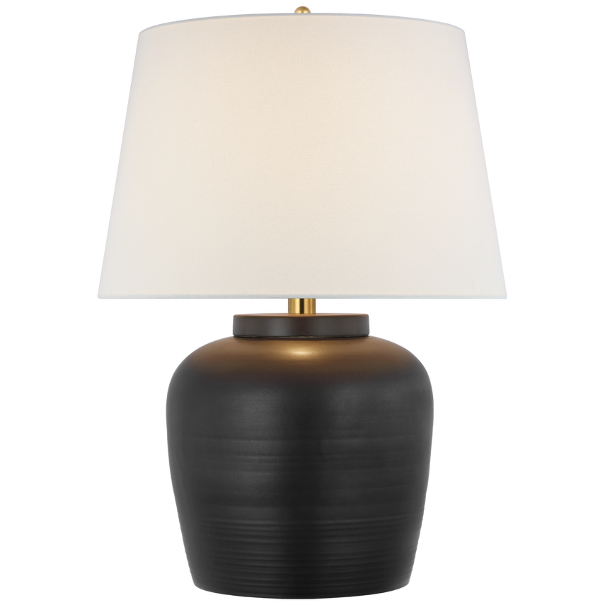 Inspired by antique pottery, this lamp has a familiar sculptural design. Its subtle crackled texture is beautifully contrasted and finished with an elegant linen shade. Ceramic glazes may vary in colour and texture slightly.