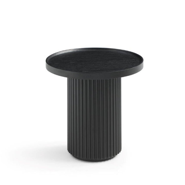 Matte black is perfect for any living space. Sophisticated design with black oak veneer top and base with matte black lacquered rib details. The wood-grain oak veneer is subtle yet striking, and the edge detail on the tabletop adds a further level of sophistication.