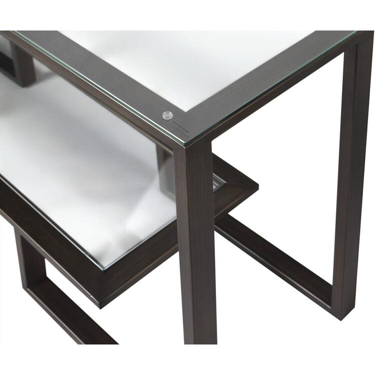 Sleek and stylish, the Mayfair Console is undeniably stylish. Handcrafted from metal and tempered glass, Mayfair offers alternative finishes to specifically match your location and color palette. Square in shape with a recessed second tier, the Mayfair makes an elaborate addition and is perfect for displaying your inspiring coffee-table reads.