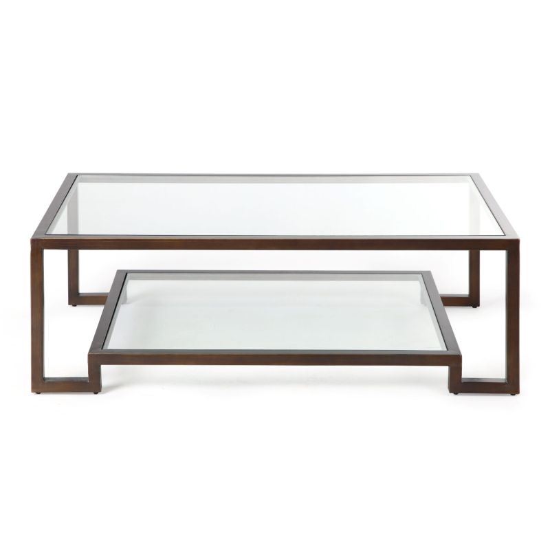Perfect to support a wealth of magazines and a nicely sized art book or two, this dual-surface coffee table, with its glass and antique bronze finish and crisp angular steel frame, is a striking centrepiece for your lounge. The coated steel frame has a rustic look with a nice rust finish and the variations in tone and gloss fully showcase the double glass top. Whether you have a minimalist space, an industrial open space, earth tones or a completely different style, this perfectly designed and functional coffee table will help bring your space back. together and serve as a fabulous focal point.