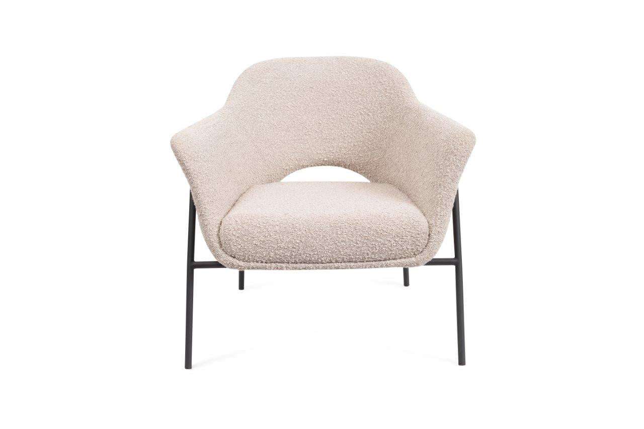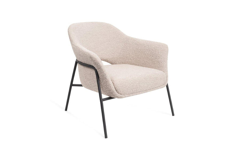 A unique and attractive addition to any living environment. This chair has an eye-catching style, since it is upholstered in a beautiful Chex Steam boucle fabric. Its black sandblasted metal legs provide stability and support, making it the ideal place to unwind. The modern style and neutral color will integrate effortlessly with any décor, making it the ideal accent piece.