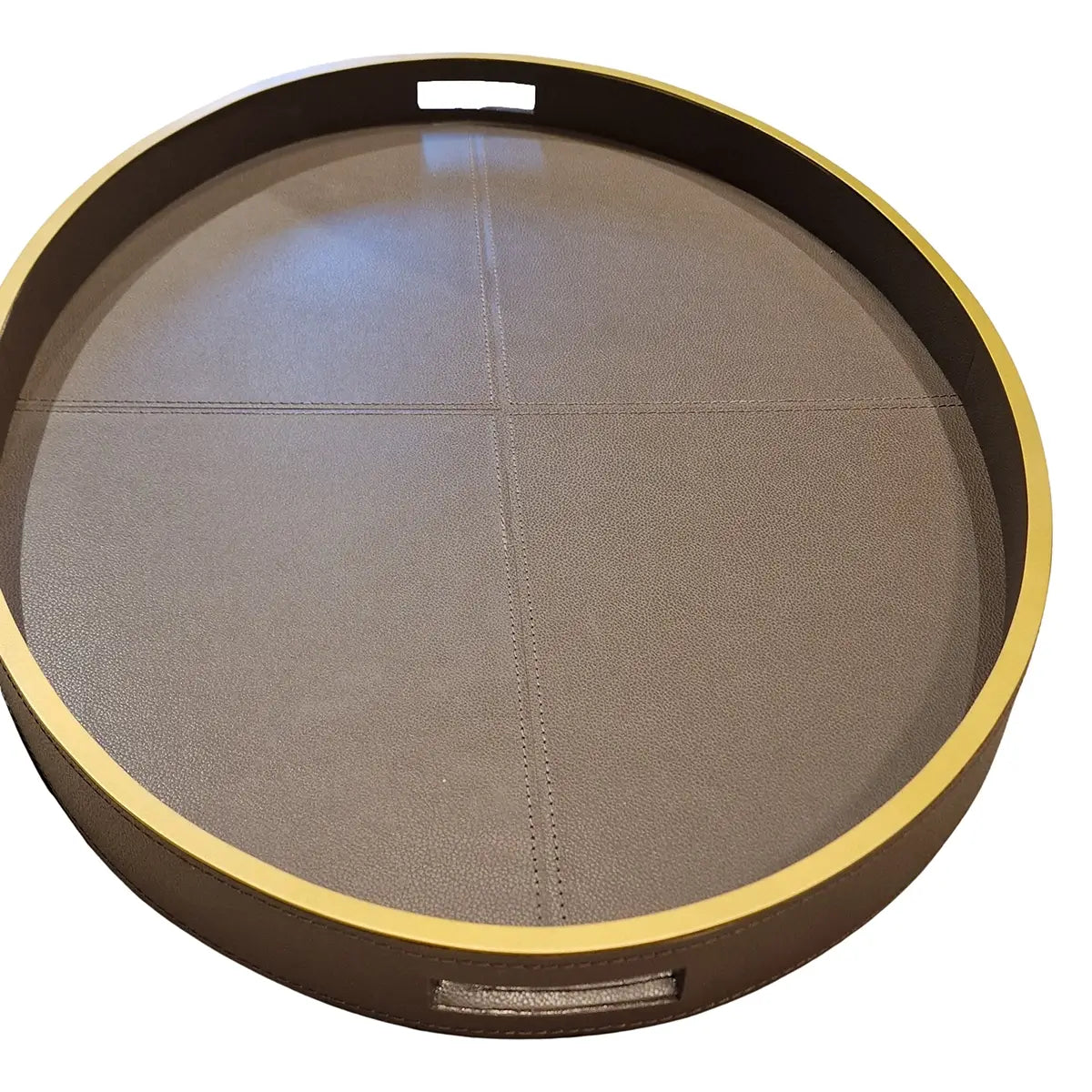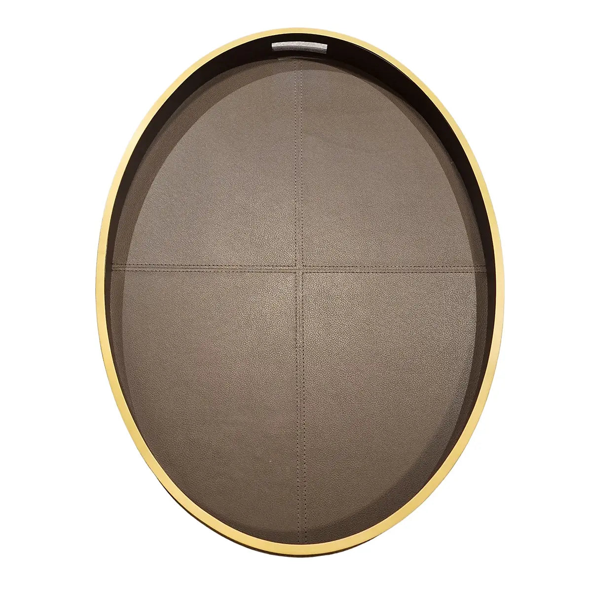 The Paragon Leather Tray Oval Putty is covered in luxurious leather and features gilt metal detail and cut out handles.