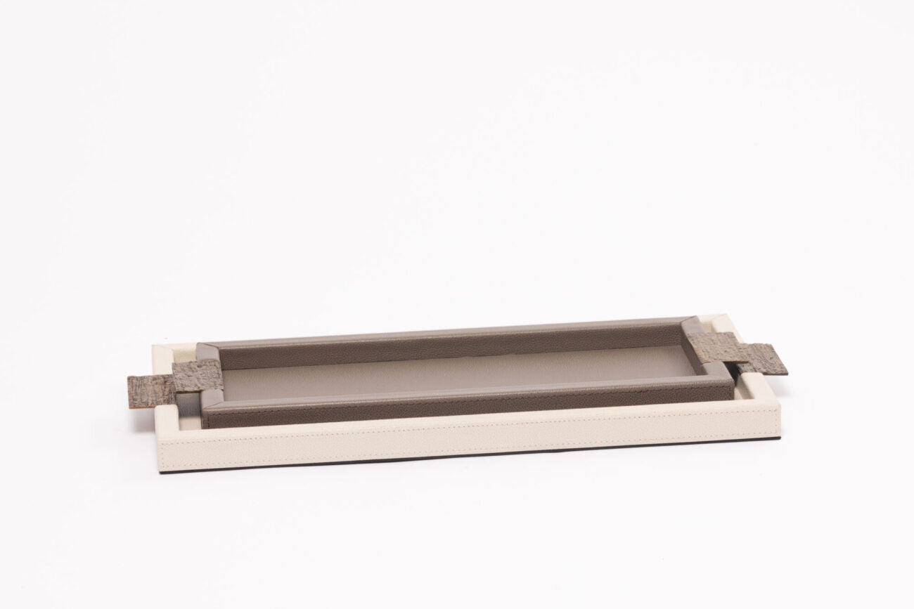 All our trays use real leather with the base lined in a black piquet. These materials offer a sense of opulence with their intricate textures and unquestionable quality.