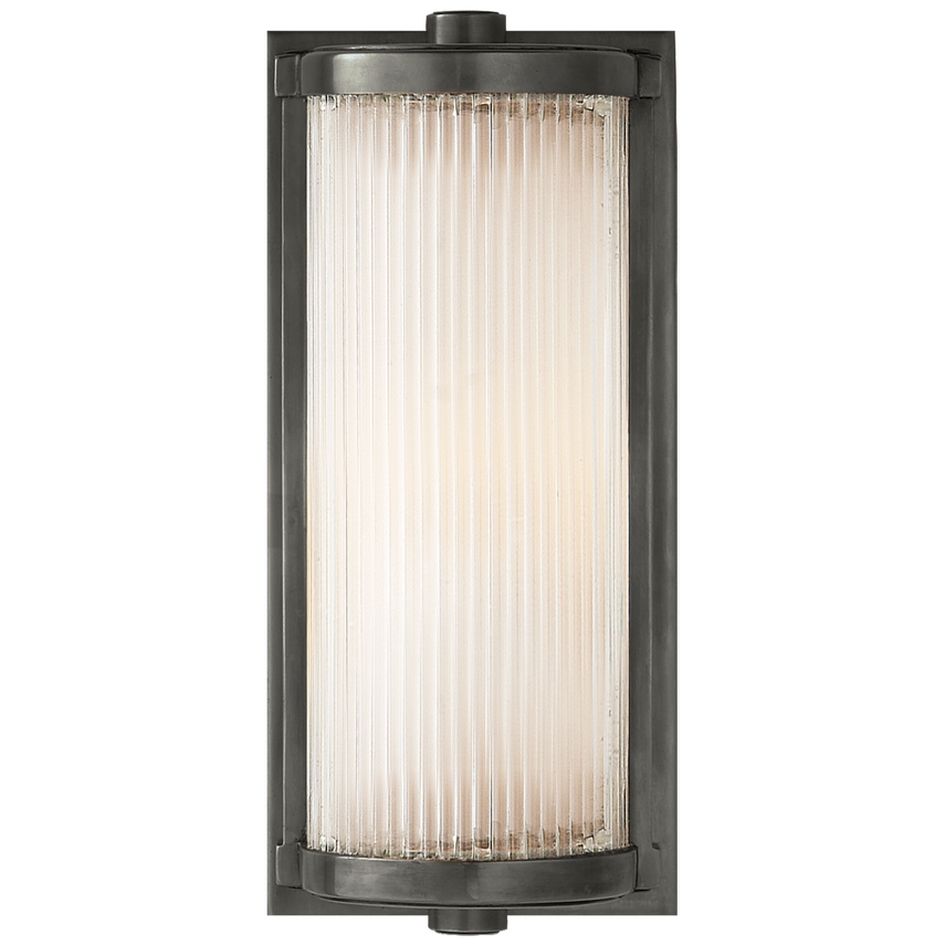 Ribbed glass combined with a box style border creates a simple yet effective wall light. This also gives off a beautiful warm and soft glow through the slightly frosted glass.